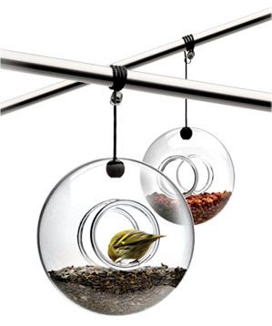 Go modern…with your bird feeder. How cool are these? It’s glass and on a suspension so it will withstand inclement weather.