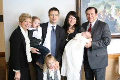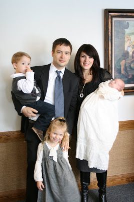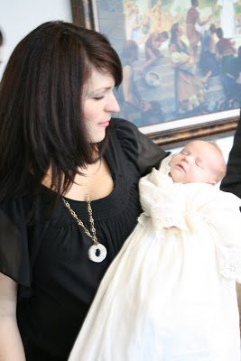 Sunday was a beautiful day. Since my parents were in town, we took the opportunity and had Jackson blessed. The blessing was beautiful and very touching–he is a golden child. Jackson was blessed in a christening dress that his great-great-great grandma hand stitched for her grandson McKay, who Jackson is named after and is his great grandpa. I also was blessed in this dress, along with Stella and Lucas and many other grandchildren. This heirloom is a family treasure.