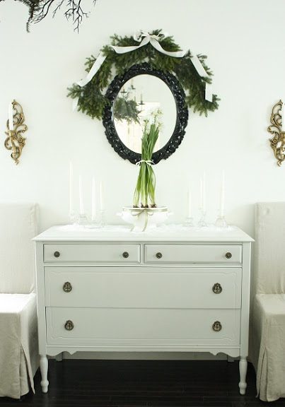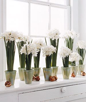 Time to trade in your regular orchids for paper whites. I picked up a nice pot of paper whites today for an easy wintertime decoration, and I’m loving all the tall green stems and little white blooms peaking out. You can plant your own bulbs but do it really soon so you can enjoy for the holiday season.