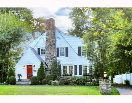 This charming house is one of my favorite. It’s not flashy or large; just charming. I get to drive by it often, and it always gets a double take from me. The current owner makes sure to have seasonal plants potted in the front door urns. In the wintertime you’ll see evergreen topiaries. In the fall, cabbage plants with mums. In the spring, tulips. In the summer, little rose trees. Yeah…I’ve been taking notes. Buy it here.