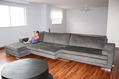 Looking for a sofa to seat your entire family? Here’s one that can do the trick. My girlfriend, who recently moved to Brazil, emailed me a picture of her new sofa and I LOVE it. The center can pull out as a chaise, so the sofa is large enough for a bed. She actually got it custom made by a village man for a VERY reasonable price. I guess all the American stores are so expensive down there. Even Ikea’s furniture is thousands and thousands of dollars.