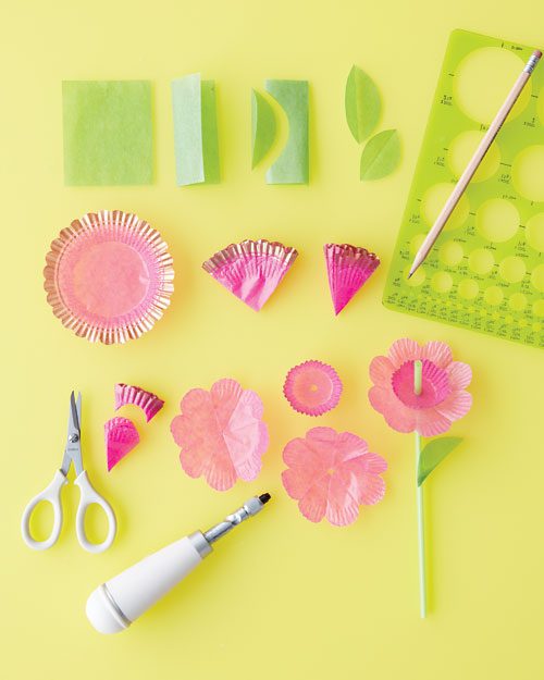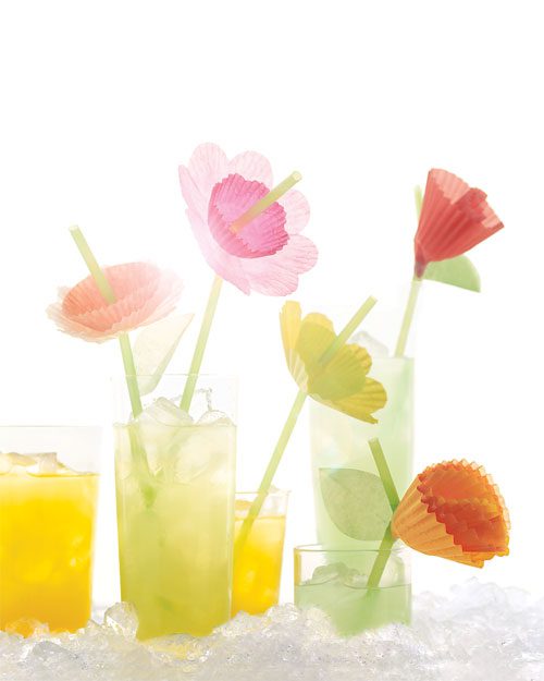 Oh the joys of cupcake liners! Here another cute idea for your next party–floral straws!