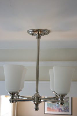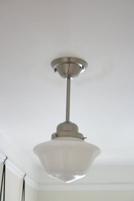 Well I finally got our lighting completed in our hallway and entryway. I’ve learned a few things during this process–1. lighting is expensive! 2. measuring is very important. Of course I was on a budget, so many of the lights I liked were nixed. I needed to find lighting that had a nickel finish because other lighting in the house has that finish as well as door knobs. And I needed to be somewhat conservative for resale value. I definitely wanted a schoolhouse pendant for the hallway and bought it here. My entryway was my problem child. My ceilings are only 8 feet high, so that really limited what I could choose—really limited. Also the width of the entryway is not very large, and I still needed to find lighting that would give enough light since that was the only fixture in the area. So, I ended up choosing the Soho chandelier because it’s a period-style light to the age of the house, the length worked and it’s nickel. Not my first choice, but it will work.