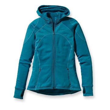 Patagonia stretch velocity full-zip hoody–perfect for layering under a down jacket. Or wearing during winter running because of the built-in handwarmer pockets.