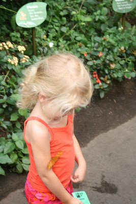 Stella is my little flower and this butterfly at the Bronx Zoo seems to agree with me and was very interested her scent. It was fluttering around her for some time. The Butterfly Garden at the zoo is quite enchanting.